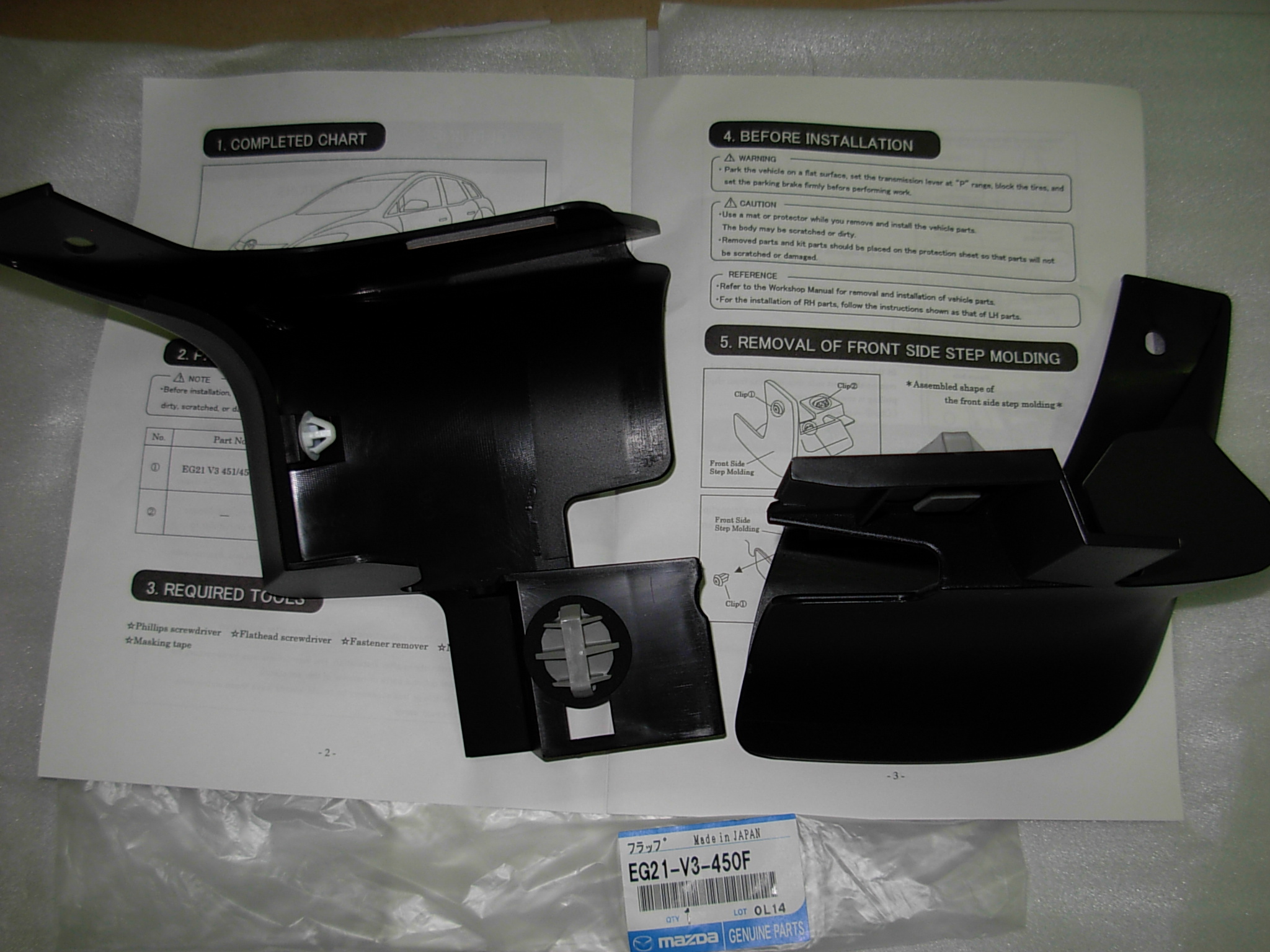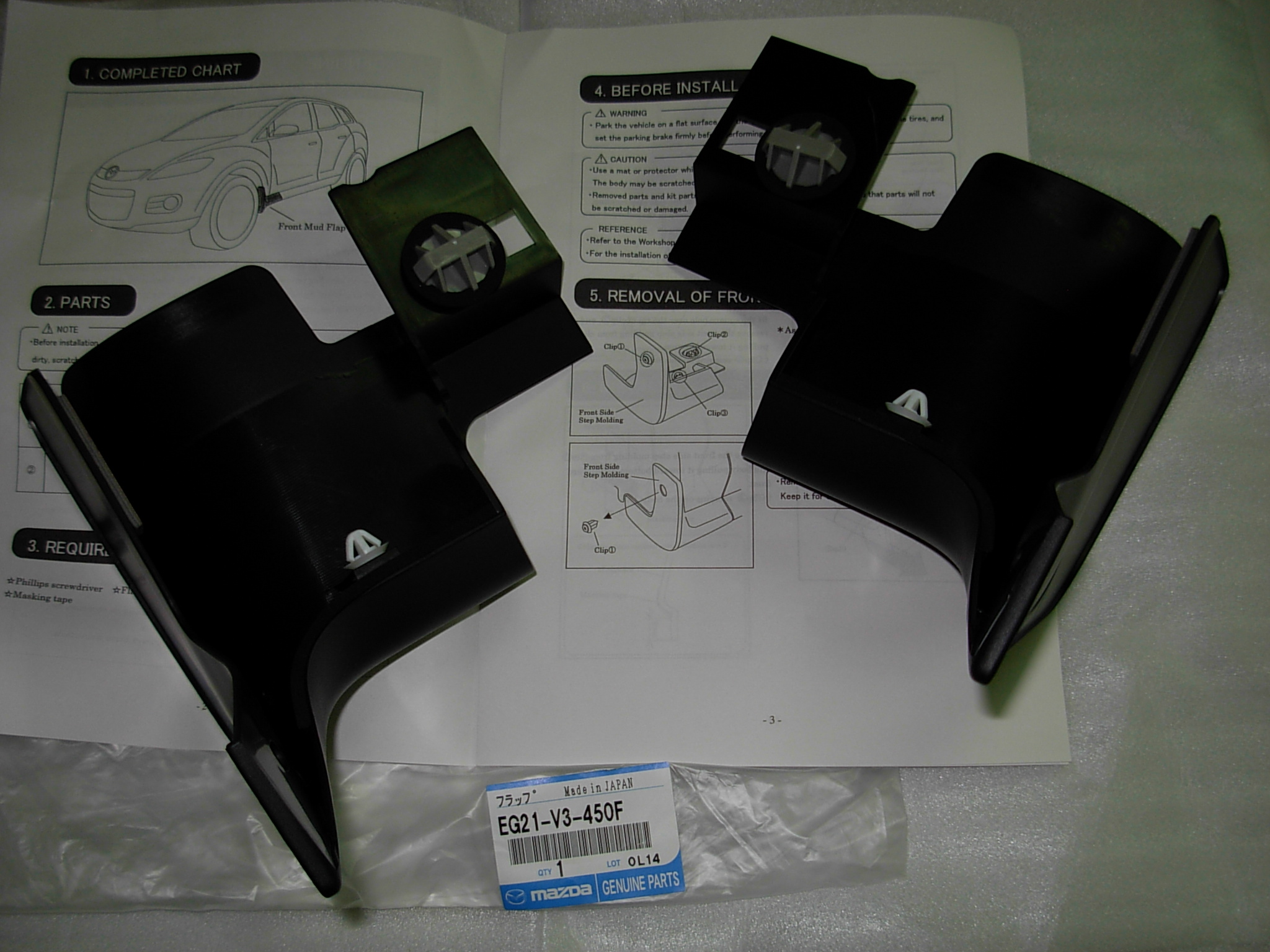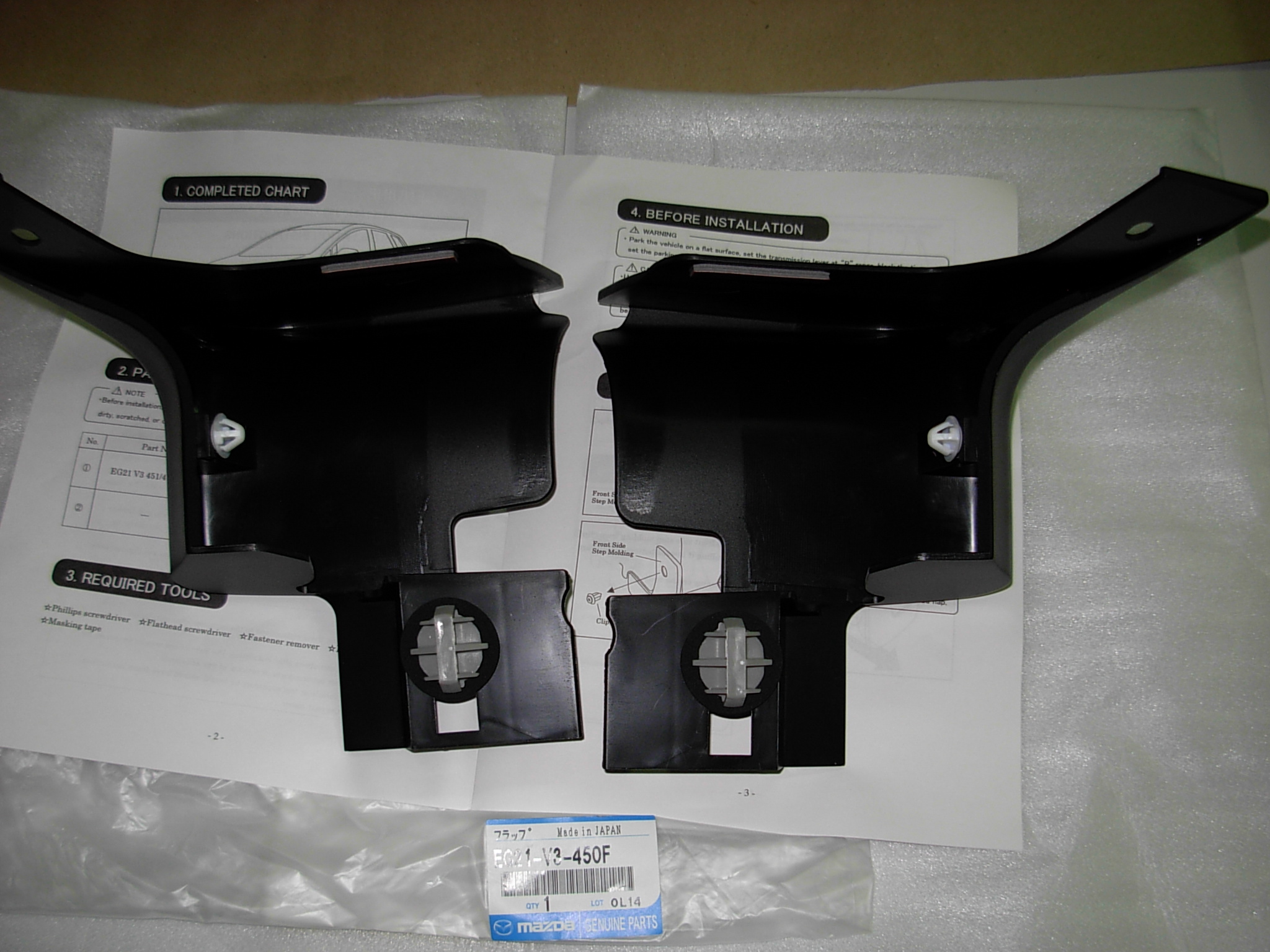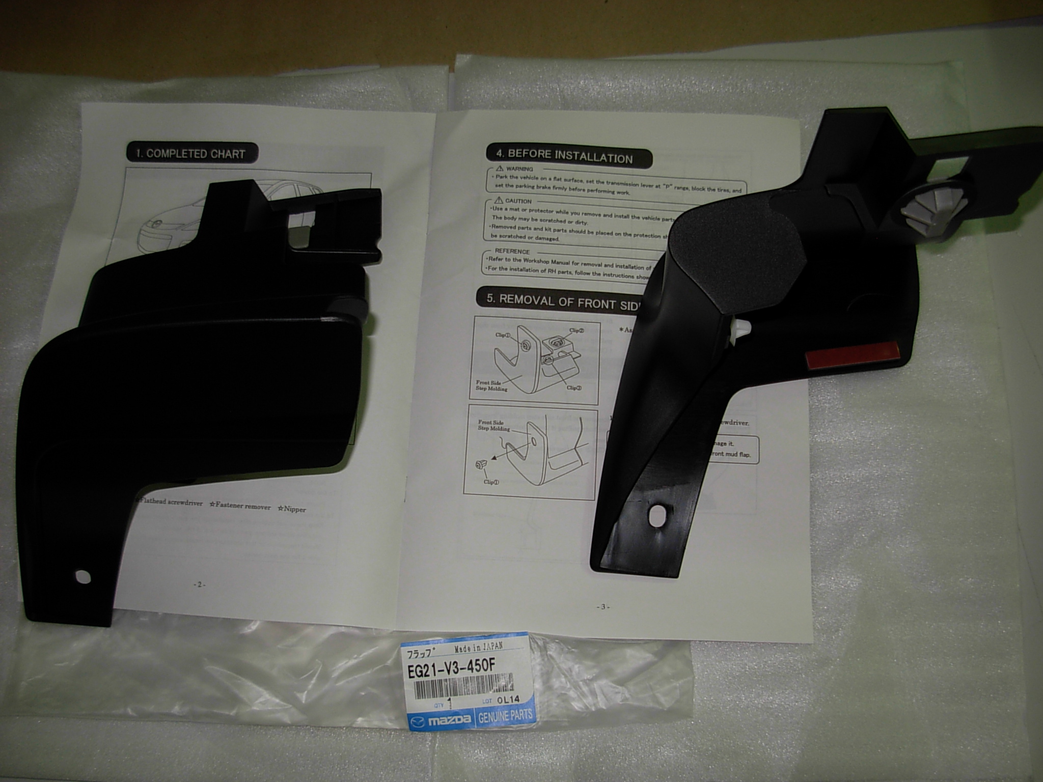 FABRYCZNIE NOWY ZESTAW CHLAPACZY PRZÓD ( STRONA LEWA + PRAWA ) KOMPLET ORYGINAŁ MAZDA